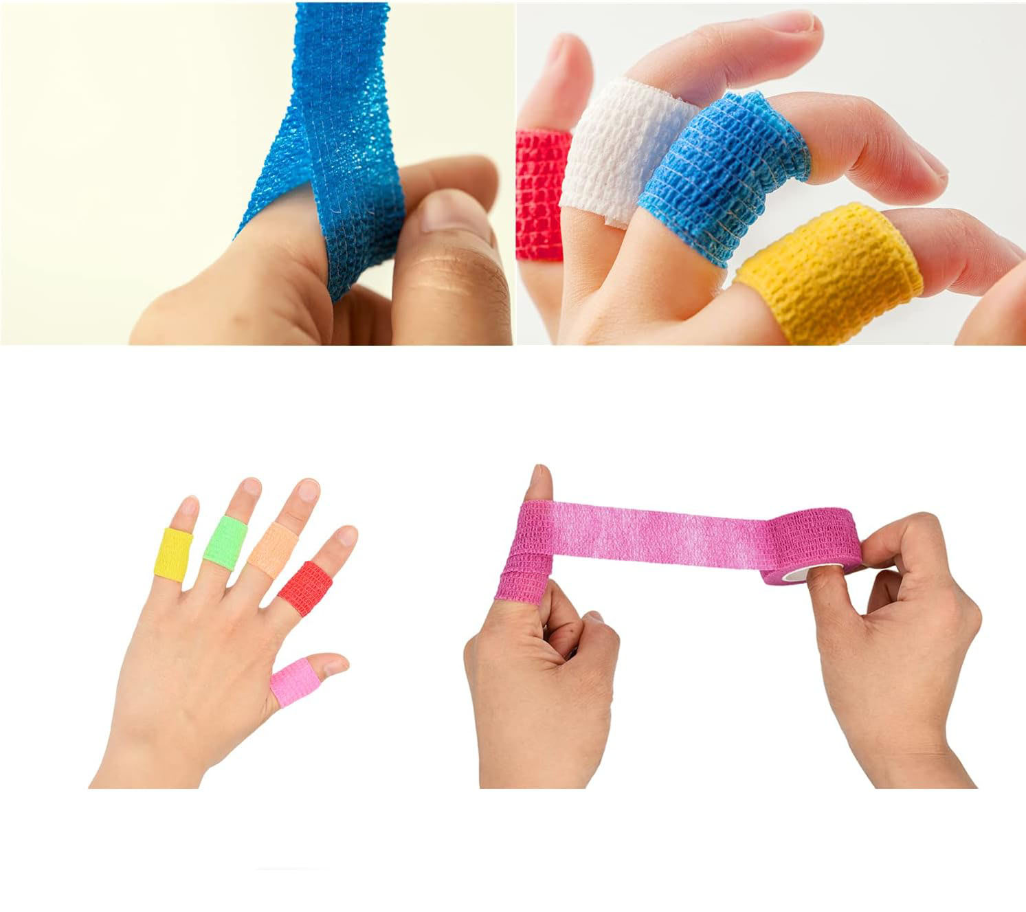 6. Vannbestandig: Våre kohesive fingerbandasjer er designet for å tåle vanneksponering, og gir en pålitelig beskyttende barriere selv under daglige aktiviteter som å vaske hender eller lett utendørsarbeid.