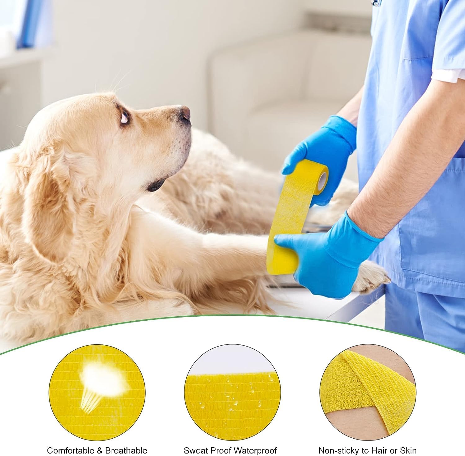 6. Enkel å bruke: Enten du er kjæledyrseier eller veterinær, er bandasjen enkel å påføre og fjerne, noe som gjør den til et uunnværlig verktøy for effektiv pleie av kjæledyr.