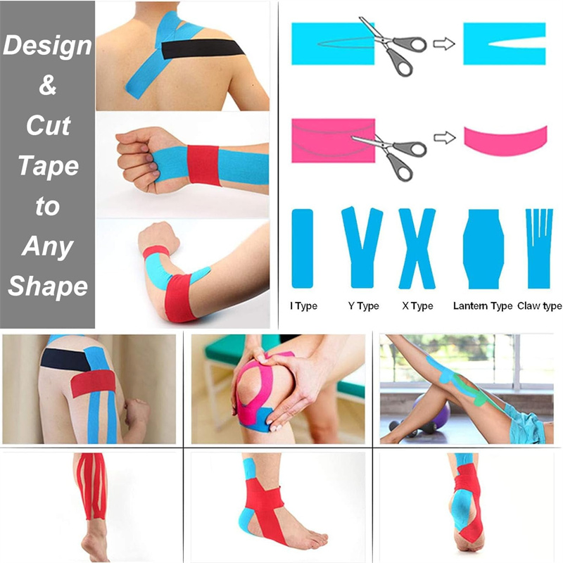 - Sport og fitness: Komfortabel støtte under trening og konkurranse; tapeteknikker for skuldre, knær, ankler og rygg.